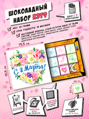 Набор вкуснейшего молочного шоколада с нежным цветочным сердцем и поздравлением с 8 марта.