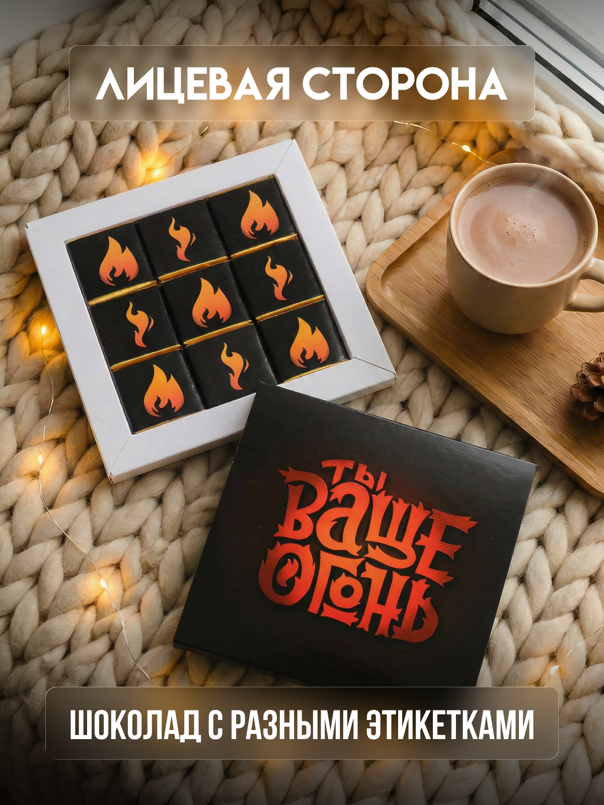 Набор с 9 молочными шоколадками, где каждая плитка завёрнута в красочную этикетку со своим индивидуальным дизайном и приятным посланием. Формат позволяет уместить больше продукции на полку. На обороте коробочки увлекательная игра.