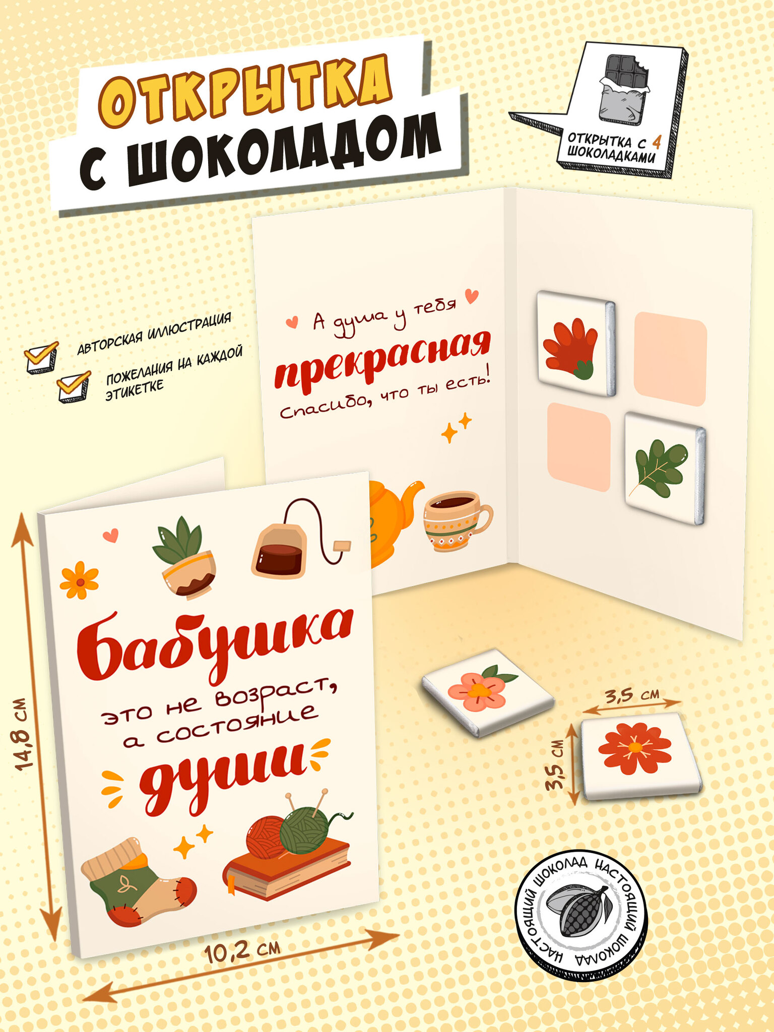 Открытки с 4-мя шоколадками
